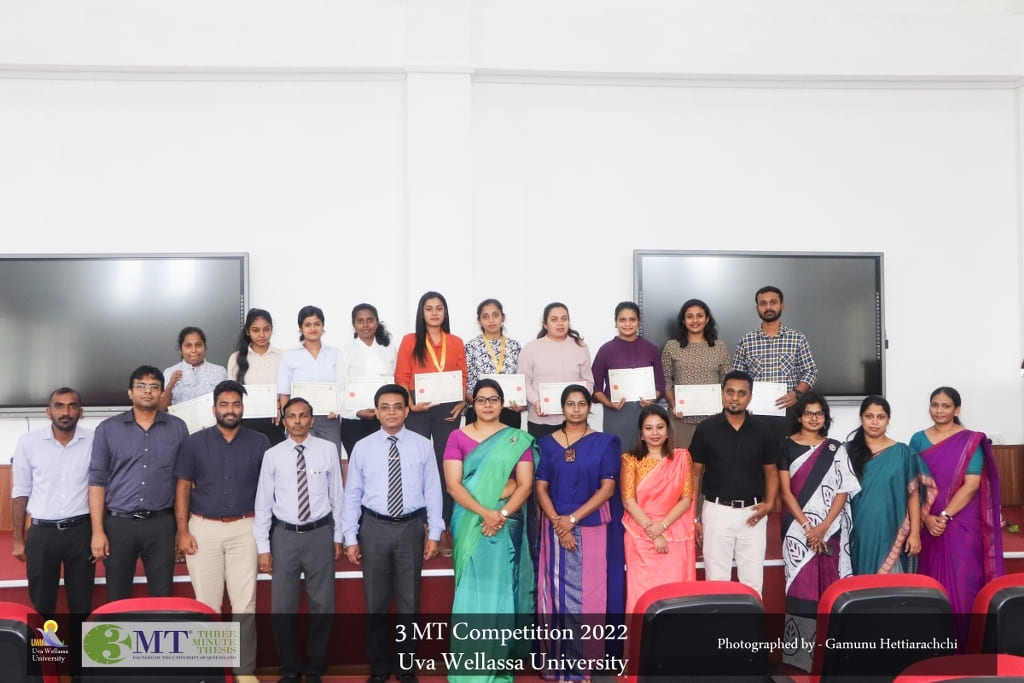 Second Annual 3MT Competition 2022 Faculty of Animal Science and Export Agriculture Faculty of Animal Science and Export Agriculture, Uva Wellassa University held the second consecutive 3MT Competition for its final year undergraduates on October 31, 2022 at the Auditorium of Faculty of Technological Studies. It was organized with the aim of showcasing undergraduate research [...]