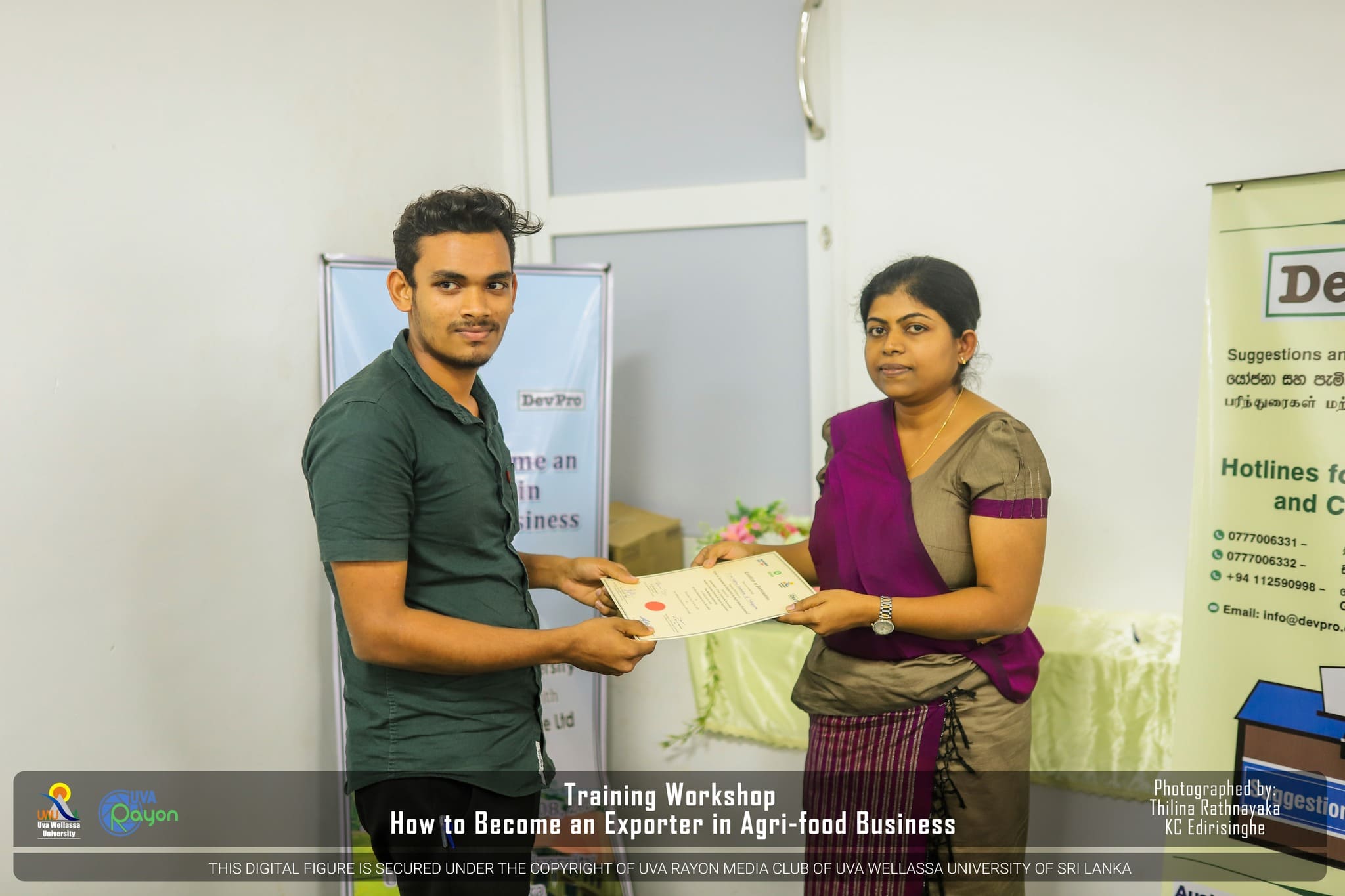 The Department of Food Science and Technology at the Faculty of Animal Science and Export Agriculture proudly organized a comprehensive three-day training workshop titled “How to Become an Exporter in Agri-food Business ” for Small and Medium Enterprises (SMEs) from the Uva, Sabaragamuwa, and Central provinces. This impactful initiative was made possible through financial collaboration with DevPro Guarantee Ltd., facilitated by Oxfam Australia.