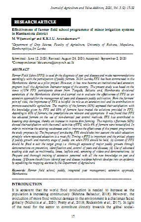 2. Effectiveness of farmer field school programme of minor irrigation systems in Hambantota district