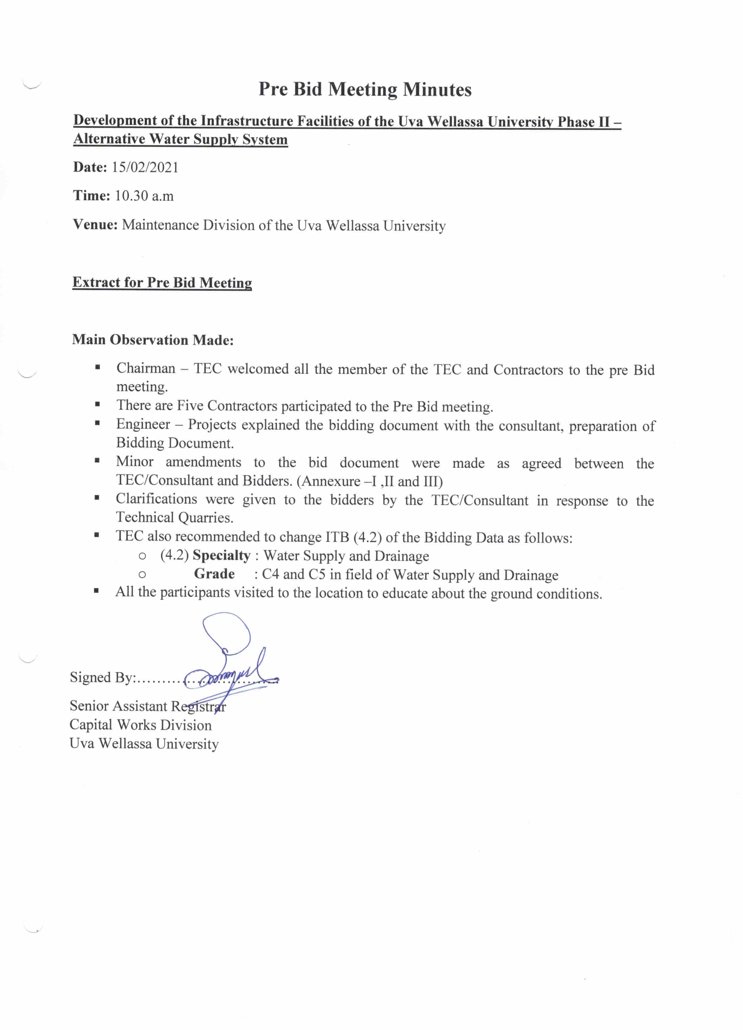 Decision of pre-bid Meeting – UWU/G/NCB/C/24/02